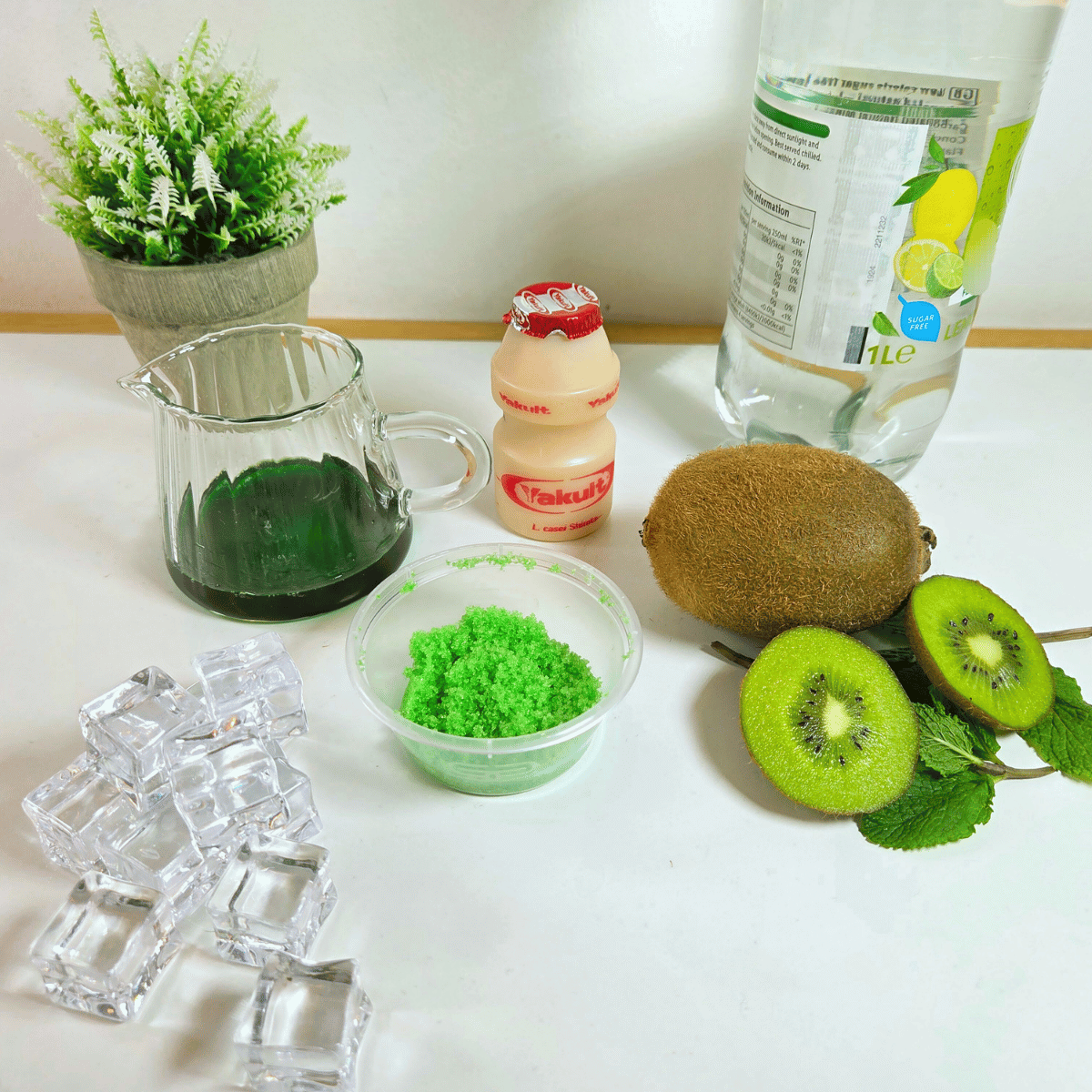 Yakult: Use the standard small bottle of Yakult. Since it provides the necessary tang, it balances the sweetness of the kiwi perfectly.